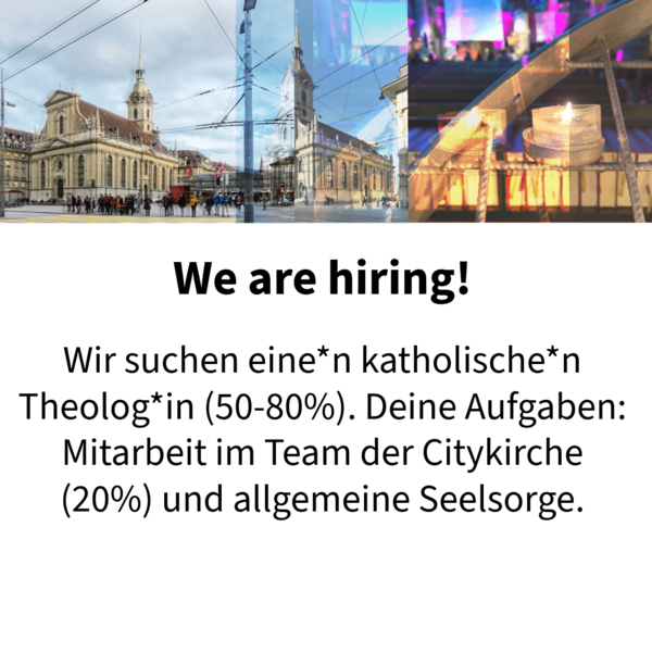 Eine*n katholische*n Theolog*in (50-80%), Mitarbeit im Team der Citykirche (20%) und allgemeine Seelsorge.