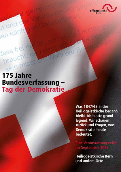 1847/48 versammelte sich die Tagsatzung in der Heiliggeistkirche in Bern. Hier wurden wichtige Grundlagen für die Bundesverfassung und die moderne Schweiz gelegt. Wir schauen zurück, debattieren über die gegenwärtige Bedeutung der Verfassung und fragen uns, was es braucht, um Demokratie und Frieden in Zukunft zu ermöglichen.