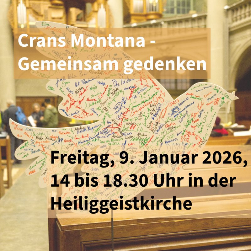 In der Heiliggeistkirche Bern gibt es anschliessend bis 18.30 Uhr die Möglichkeit zusammen zu gedenken, zu schweigen oder zu beten und Trostworte für Angehörige und Betroffene zu hinterlassen.