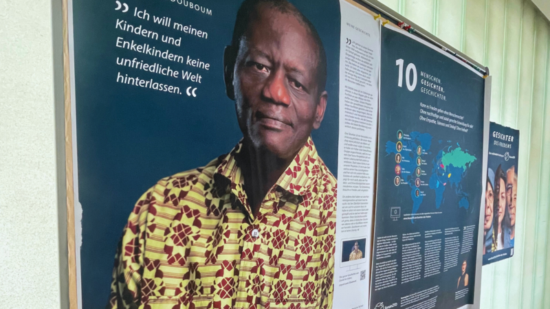 Die Ausstellung «Gesichter des Friedens» der Organisation «Pro Peace» zeigt zehn Weltbürger*innen – Menschen, die Krieg erlebt haben, geflohen sind, sich engagieren und zum Beispiel im gewaltfreien Dialog, im künstlerischen Austausch oder in der Menschenrechtsarbeit dazu beitragen, das Zerbrochene zu heilen.