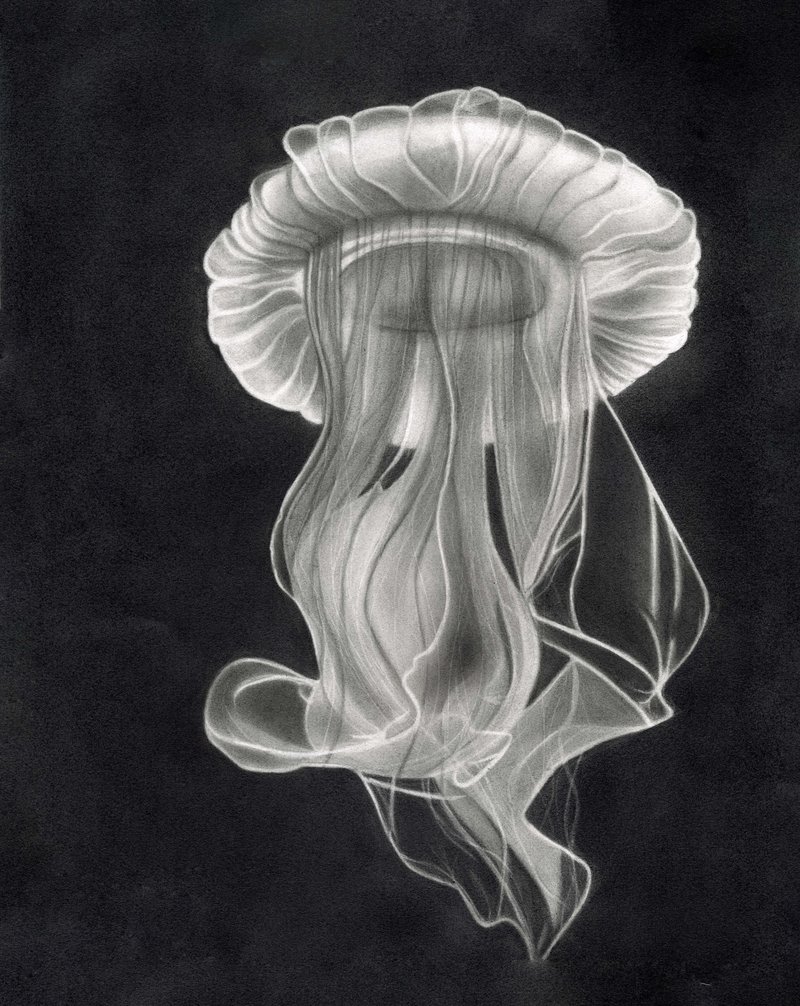Emma Baya: Emma erzählt mit ihrer Kunst mit Bleistift die Reise der Qualle, welche durchleuchtet im Ozean des Lebens treibt (Wunde), in den Wellen der Hoffnung atmen, denken und fühlen lernt (Heilung), dem langen Flussbett folgt (Wieder ganz werden) und heute dem Fluss des Lebens vertraut (Sein).